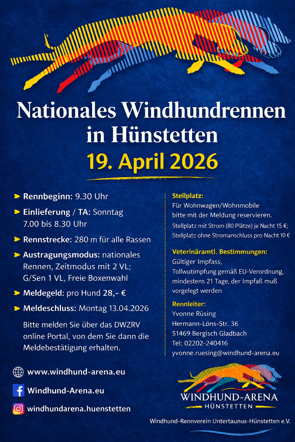 Ausschreibung 280m Rennen April 2026